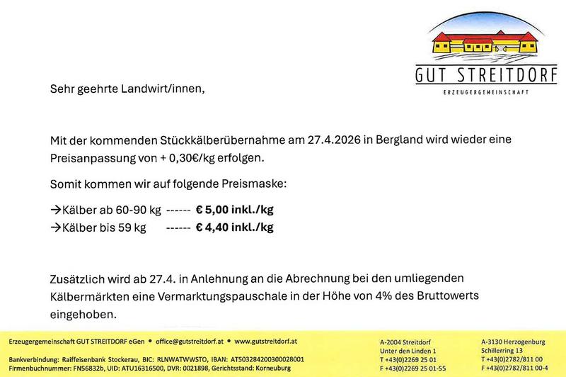 Preise ab 27. April 2026 für Rosé-Kälber: